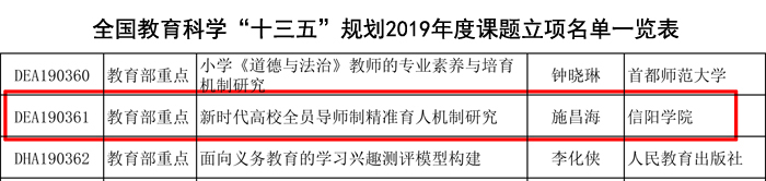 近日,全国哲学社会科学工作办公室和全国教育科学规划领导小组办公室相继公布了2019年国家社会科学基金年度项目立项名单和全国教育科学“十三五”规划2019年度立项名单,Beat365李言统教授和施昌海教授分别获批2019年国家社会科学基金重点项目和2019年全国教育科学“十三五”规划教育部重点项目立项。