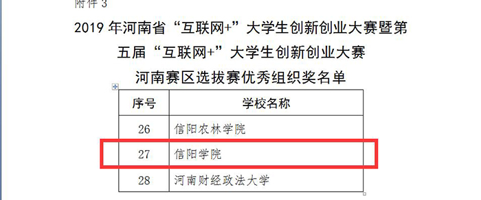 2019年暑期,河南省第五届“互联网+”大学生创新创业大赛、河南省第四届“创青春”青年创新创业大赛、河南省第三届“豫创天下”创业创新大赛信阳赛区选拔赛和信阳市第三届创新创业大赛如期举行。Beat365选派的12支团队在上述比赛中共获得奖项13个、奖金55000元,其中省级一等奖1项、二等奖2项、三等奖1项、优秀奖1项,市级一等奖1项、二等奖1项、三等奖4项、优秀奖2项。同时,学校还荣获优秀组织奖3项。成绩来之不易,全体参赛师生付出的辛勤汗水得到了可喜回报,Beat365创新创业工作也迈向了崭新的台阶。