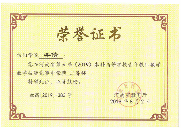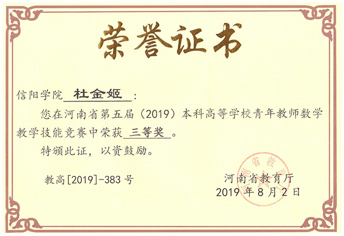 近日,第五届河南省本科高等学校青年教师数学教学技能竞赛决赛成绩揭晓,数学与统计学院教师李倩获得二等奖、杜金姬获得三等奖。