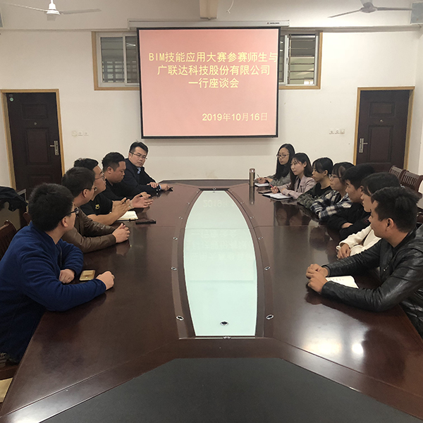 签约仪式结束后,广联达股份有限公司孙园一行在理工楼201会议室与土木工程学院师生代表进行了座谈。孙园对即将参加全国高校BIM应用技能大赛的师生进行了赛前指导,就师生在BIM及造价类软件使用过程中遇到的问题,给予了详细解答和技术服务。