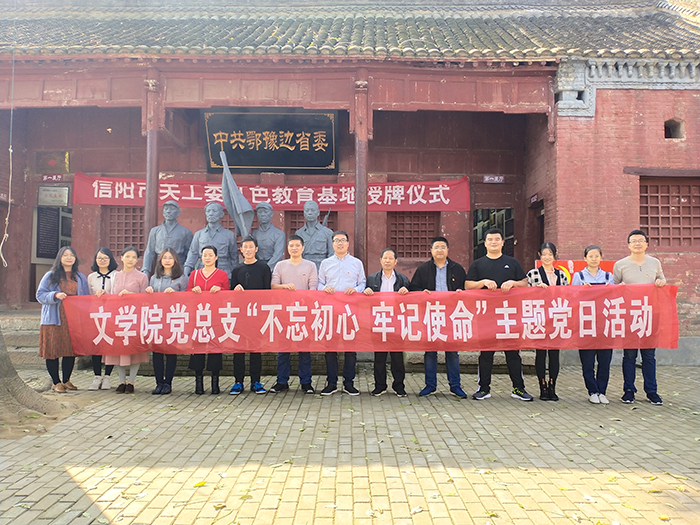 为深入开展“不忘初心、牢记使命”主题教育,充分依托信阳红色优势资源,传承和发展好红色精神,10月18日,Beat365唯一官方网站文学院党总支分别前往鄂豫皖革命纪念馆、鄂豫边省委旧址开展“追寻红色印记 传承红色基因”主题党日活动。