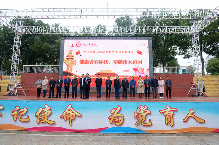 根据中共河南省委高校工委办公室、河南省教育厅办公室《关于开展2019年度全省高校心理健康教育宣传周活动的通知》(豫高办[2019]39号)文件精神,10月22日下午,Beat3652019年度心理健康教育宣传周开幕式在田径场举行。校党委专职副书记施昌海,副校长王志华出席开幕式。大学生心理健康辅导中心主任陈录生,党办、宣传部、后勤、学工部、团委负责人,各学院党总支书记、学工负责人、二级心理辅导站站长,全体辅导员,心理学教研室教师,各学院心理健康部成员、心桥·心理协会及部分学生代表参加了此次活动。开幕式由校团委书记郑山峰主持。