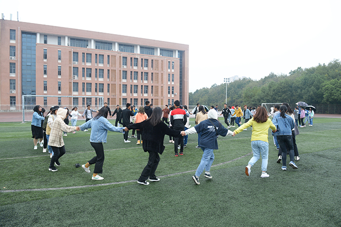 开幕式后,在蒙蒙细雨中,同学们热情不减,第六届心灵派对精彩上演。本届心灵派对包括蒙眼作画、双龙戏珠、纸杯传水、建桥搭路、穿越电网、兔子舞、爱的魔力转圈圈、猴子捞月、我爱祖国河山、一圈到底、螃蟹赛跑、传声筒等38项户外心理体验项目。