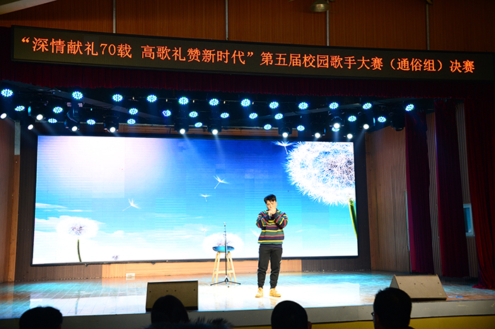 深情献礼70载、高歌礼赞新时代。为深入学习贯彻习近平新时代中国特色社会主义思想和党的十九大精神,引导广大青年学生德智体美劳全面发展,12月5日晚,由校团委主办,大学生艺术团承办的第五届校园歌手大赛(通俗组)决赛在大学生活动中心举行。校党委专职副书记施昌海,工会主席傅洪涛出席比赛活动。有关学院党总支书记李赟、李静、胡志国,各学院团总支书记和500余名师生共同观看了比赛。
