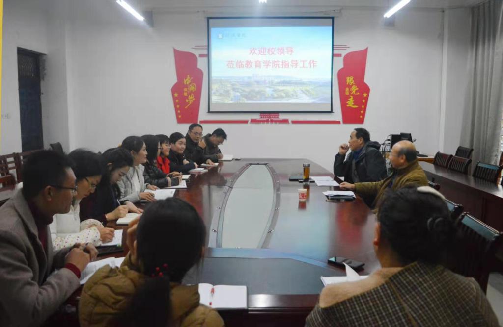 12月3日下午,名誉校长王北生来到教育学院,就师资队伍建设等工作进行调研指导并召开座谈会。教育学院全体班子成员及教研室主任参加了座谈会。