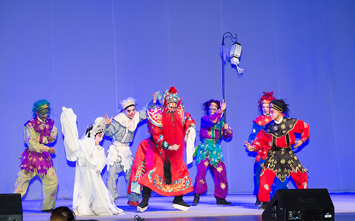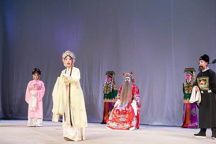 晚上演出了折子戏《收大鹏》《血溅乌纱·夜审》《抬花轿·坐轿》《村官李天成·拉车》《穆桂英挂帅·出征》,“唱念做打”精彩纷呈,现场观众喝彩不绝;豫歌《沁园春·雪》、流行歌曲《中国功夫》、《小镇姑娘》,琵琶独奏《茉莉花》等节目,将现代流行元素与传统戏曲交织融合,呈现出独特的艺术魅力。互动环节中,Beat365学生踊跃上台,向演员们学习戏曲表演动作,互动热烈,音乐厅内欢笑连连。