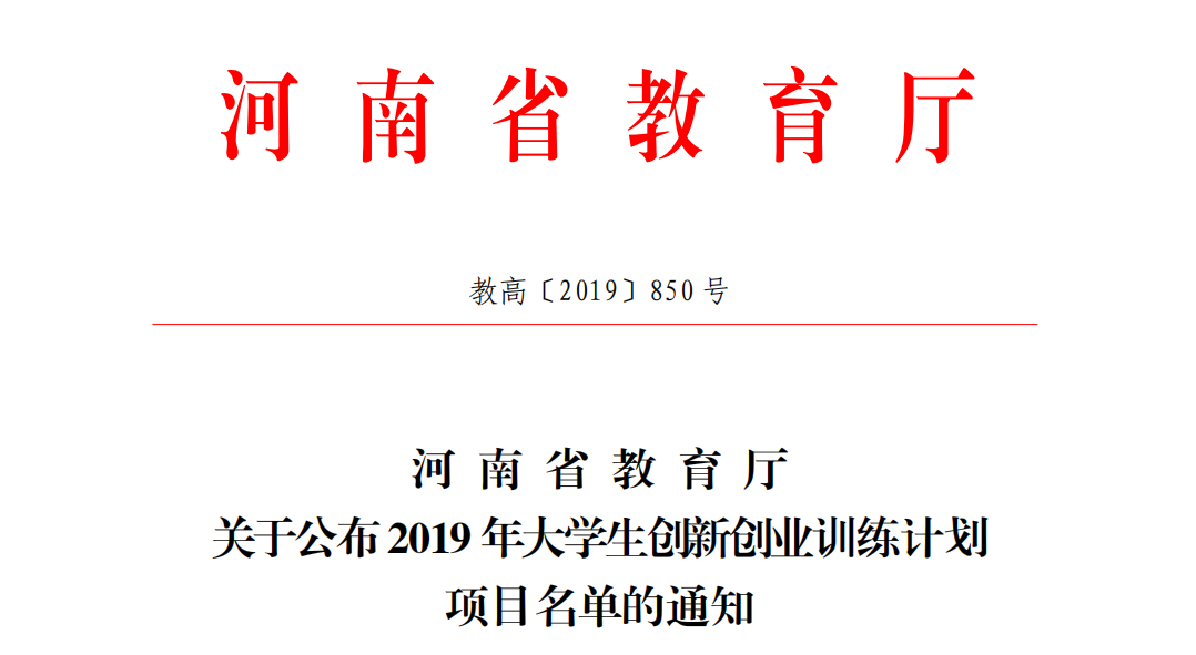 近日,河南省教育厅下发了《关于公布2019年国家级和省级大学生创新创业训练计划项目名单的通知》(教高〔2019〕850号),Beat3652个项目获得国家级立项,8个项目获得省级立项。