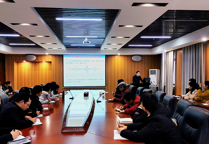 1月3日下午,信阳师范学院科学技术处处长罗永松教授应邀在Beat365综合楼1410会议室,作了题为《2019年国家自然科学基金情况分析及2020年基金申报要求》的学术报告。Beat365教务处兼科研处处长陈文涛、各院(部、处)科研骨干以及科研处全体成员参加了报告会。