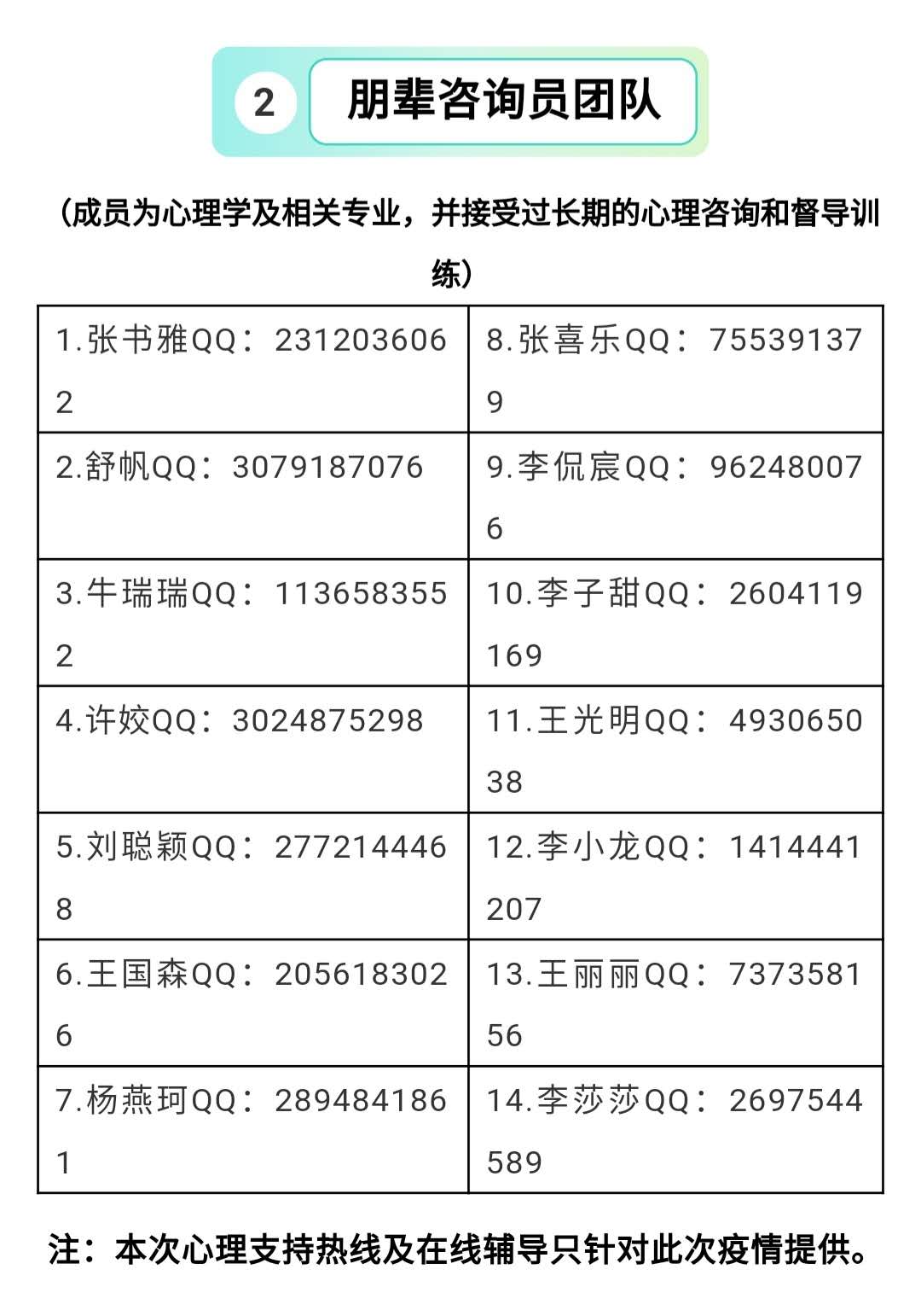 在中心专职教师指导下,组建安心小组朋辈咨询员线上心理援助团队,由14名接受过长期心理咨询与督导培训的朋辈心理咨询员组成。在宣传疫情防护知识,培养学生应对疫情心理辅导能力的同时,为社会大众提供线上心理咨询服务。