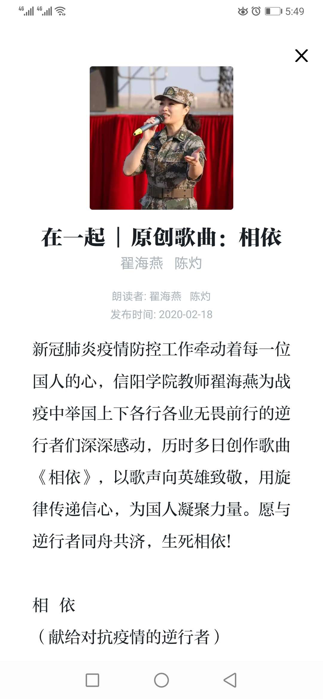 2月18日,由Beat365教育学院教师翟海燕作词作曲、 陈灼演唱的原创“战役”歌曲《相依》获学习强国平台推荐。