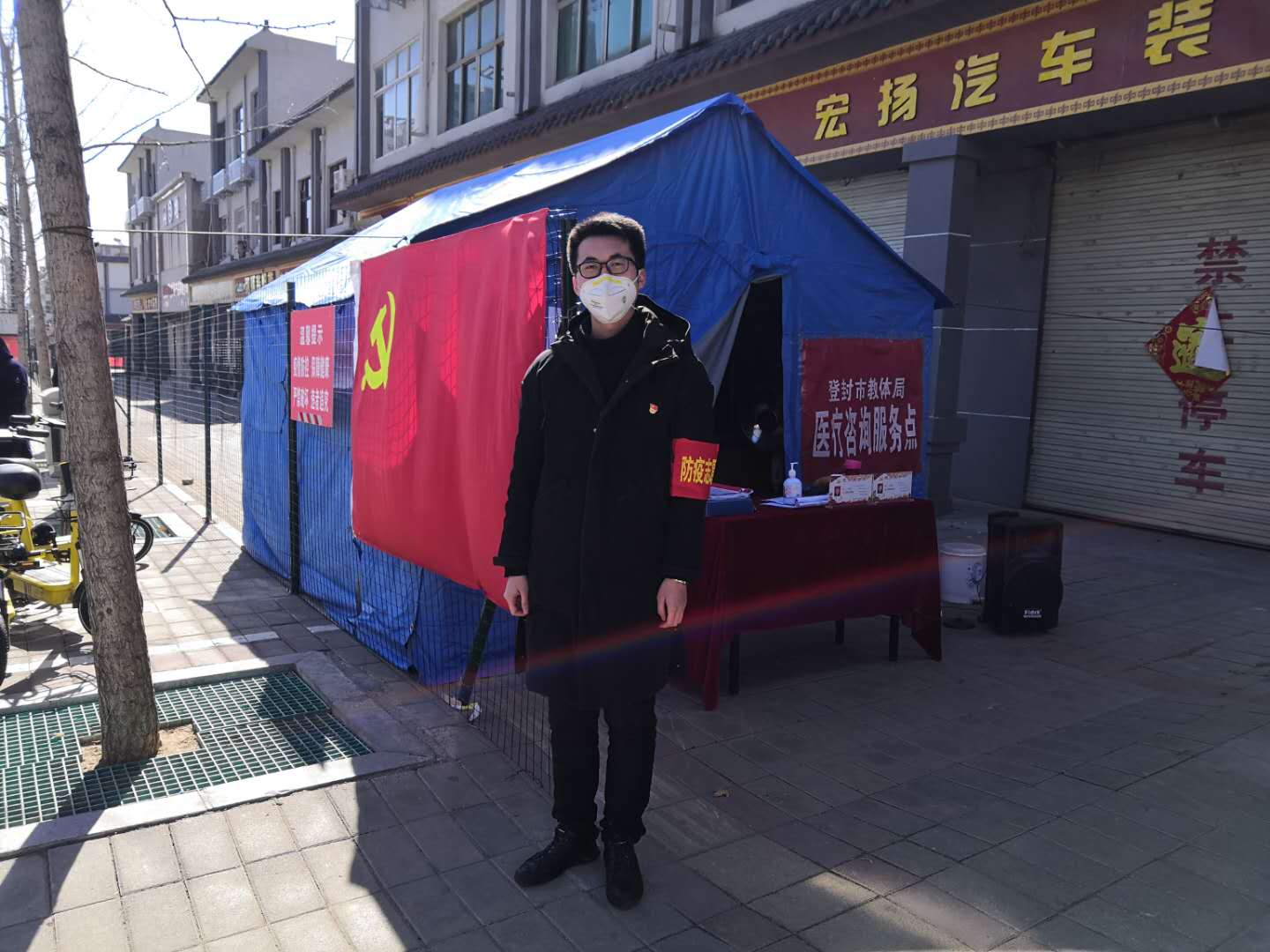 疫情就是命令,防控就是责任,支部就是堡垒,党员就是先锋。他作为一名党员,积极响应登封市教体局号召,放弃假期,扑在疫情防控第一线,守好社区防控的第一道岗,对分包的社区,严防死守,对疫情高发地区旅行史、接触史的居民,仔细排查,认真登记,对出入社区的居民严格落实测体温、登记信息制度,将各项工作落细落实。作为青年党员,他积极承担夜班值守任务,不畏风寒。对出行不便,需要生活物品的居民,积极开展帮扶活动,代其购买,送至家中,让居民感到暖心、安心。