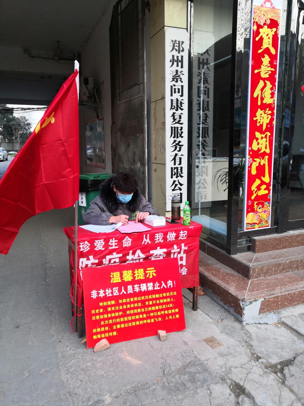 2月3号收到通知后,周鹏程就火速赶到了新郑市新华路办事处后屯居委会。在疫情防控值班点,周鹏程负责社区进出人员的排查工作。他尽职尽责耐心地给社区居民讲解疫情防控知识,并告知大家特殊时期“非必要、不外出”。对于一些紧急特殊情况确实需要外出的人员,周鹏程认真地核实身份信息,测量体温,在做好登记工作的同时,总不忘嘱咐外出人员戴好口罩,尽量避免出入人流量较多的区域,务必做好个人防护。同时严格把控外来人员进入小区,并对来访人员进行消毒。每天从早上七点开始,一直工作到下午三点,不间断工作8小时,但他不喊苦不喊累。他说“比起奋战在一线的白衣天使们,我所做的只是九牛一毛,我要尽一点自己的力量,希望疫情早日结束”。