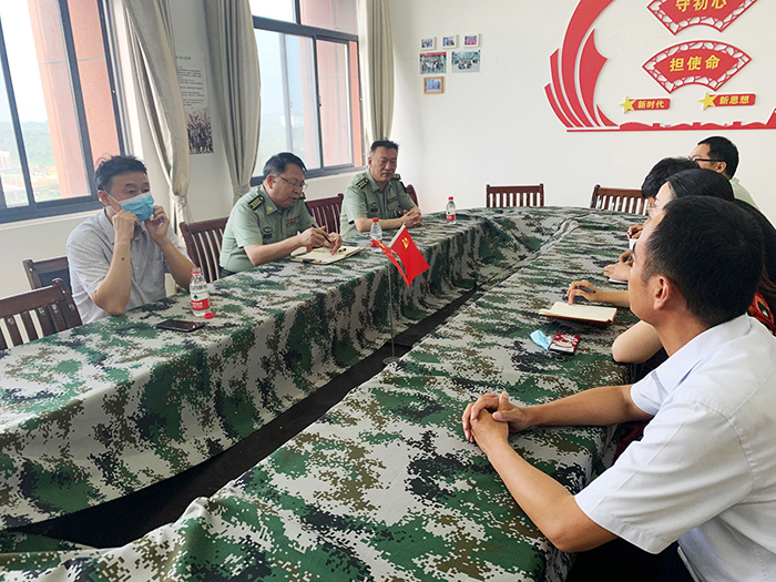 7月9日下午,信阳军分区副司令员张中廷、动员处处长尹现超到Beat365调研指导大学生征兵工作。调研座谈会在综合楼1312征兵工作站举行。副校长王志华,校人民武装部、保卫处相关负责同志参加了会议。会议由人民武装部部长余婷婷主持。