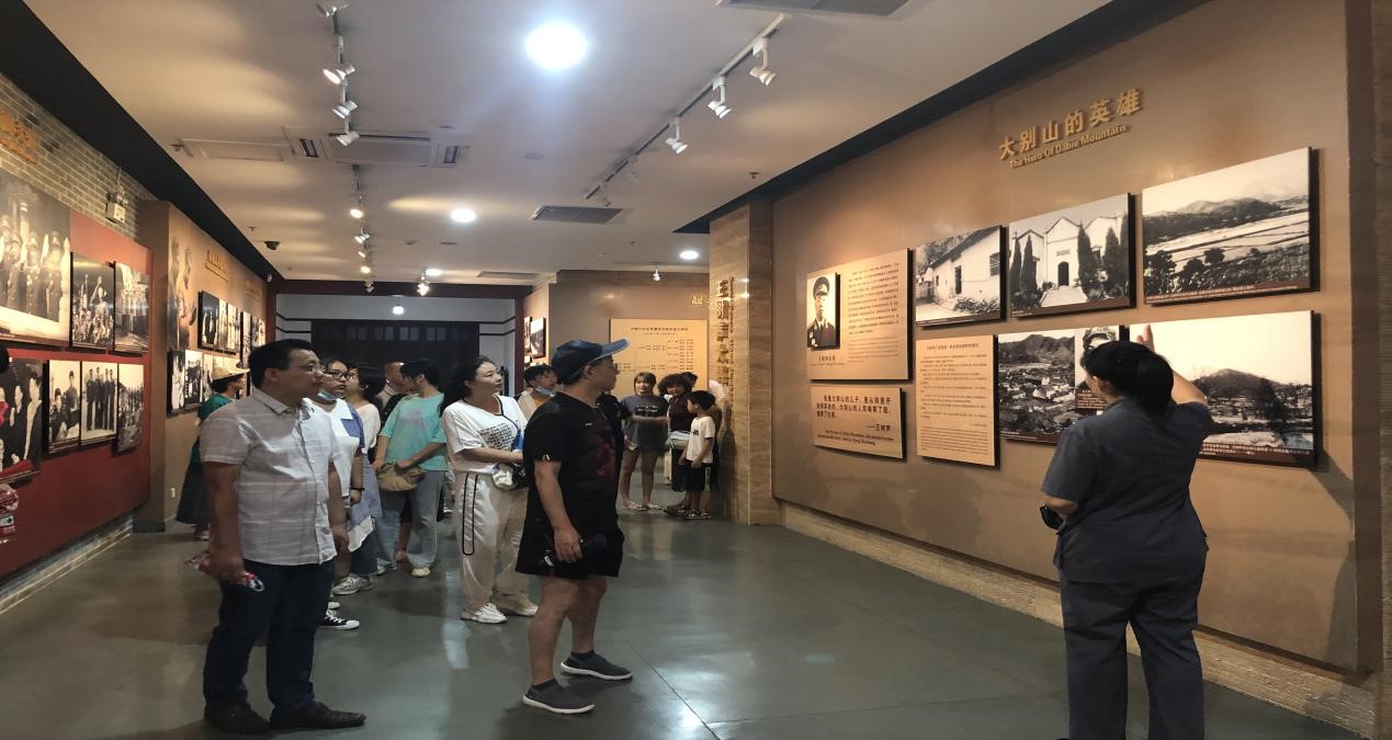 8月13日,考察团队首站奔赴鄂豫皖苏区首府新县,来到鄂豫皖苏区首府烈士陵园,瞻仰革命烈士纪念碑、纪念堂,远眺英雄山上“红旗飘飘”主题雕塑,并举行庄严的宣誓仪式。接着,考察团队来到中共中央鄂豫皖中央分局和省委旧址参观,并追随着习近平总书记的足迹,开启了新时代新农村典范之旅——新县田铺大湾之行。8月14日,师生们参观了鄂豫皖苏区首府革命博物馆、鄂豫皖苏区将帅馆、刘邓大军千里跃进大别山纪念馆和商城县烈士陵园、赤城县苏维埃政府旧址。8月15日,团队奔赴固始,参观了根亲博物馆、寻根楼、民俗文化村、固始县苏维埃纪念馆、杨山煤矿工人武装起义纪念馆,并举行以“弘扬大别山精神,推进思政课建设”为主题的师生座谈会。8月16日,团队赴红二十五军长征出发地罗山何家冲,参观了红二十五军军部旧址,并来到何家冲政治文化广场庄严宣誓,重走“长征路”。