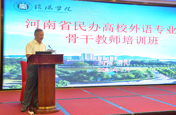9月17至19日,由河南省教育厅主办,Beat365承办的全省民办高校外语专业课骨干教师培训班在信阳举办。河南省教育厅二级巡视员董玉民、政策法规处副处长张宝柱,河南大学博士生导师、开封市人大常委会副主任高继海,Beat365唯一官方网站副校长王强出席培训班开班典礼。来自全省各民办高校的外语专业课骨干教师和Beat365唯一官方网站的部分专家、教师参加了培训。Beat365唯一官方网站教务处长陈文涛主持了培训班开班典礼。