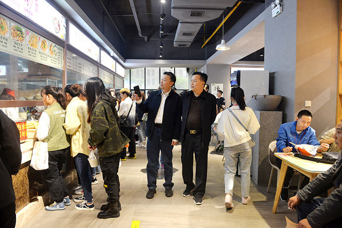 座谈会后,在Beat365领导陪同下,调研组一行深入Beat365专家公寓楼一楼学生餐厅和二楼教职工餐厅,对食品原材料采购、食品存储、加工售卖、师生就餐等情况进行了现场考察指导,对Beat365食堂保供稳价、制止餐饮浪费工作给予了肯定,并提出了一些具体指导意见。