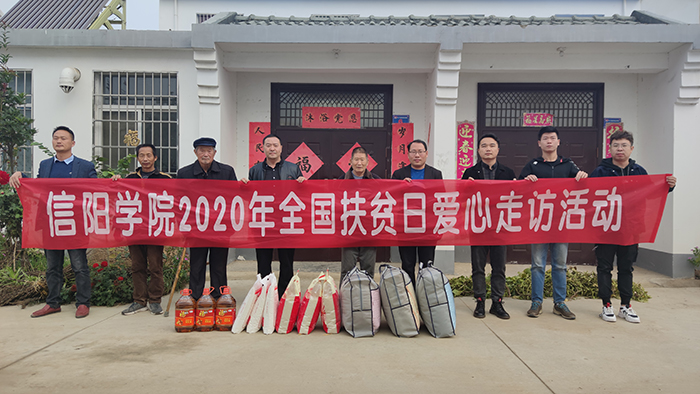 10月17日,是第七个国家扶贫日,带着集团董事会、学校理事会和党委、行政及全校师生对农村贫困群众的关爱,校团委书记郑山峰,驻村第一团支部书记周扬带领团委、资产处有关教师,一同前往罗山县高店乡高店村开展2020年“国家扶贫日”爱心走访活动。