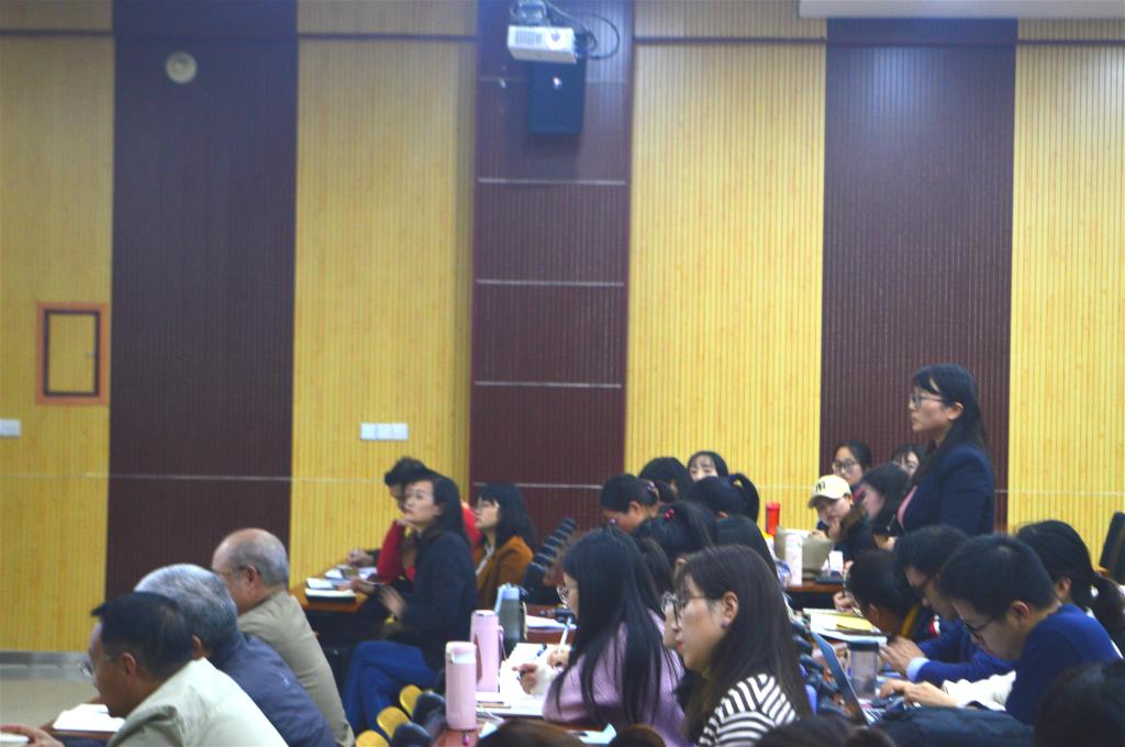 冯教授与在场师生进行亲切互动,青年教师李夏菲就课程思政如何与所讲授课程更加紧密结合等问题向冯教授进行了请教与探讨。