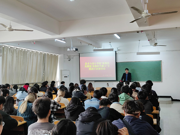10月29日,美术与设计学院团总支在艺术楼407室开展主题团课活动。2020级各班团支书和120名团员代表参加了此次学习活动。团总支书记刘加宽作主题团课,讲述了黄继光、邱少云和罗盛教等英雄事迹。团员代表王凌霄踊跃发言,讲述了抗美援朝的历史。大家就“如何继承和弘扬抗美援朝精神”展开讨论,纷纷表示要深入学习宣传中国人民志愿军的英雄事迹和革命精神,争做有作为的新时代青年。
