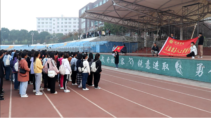 10月30日,大数据与人工智能学院在学校田径场开展了主题团日活动。学生会全体学生干部以及2020级全体团员参加活动。团干代表梅喜浚带领学生重温入团誓词,熟悉又庄严的誓词提醒着在场的每一位团员:铭记团员使命,不忘入团初心。团员代表李冰洁发言:“当代青年团员要继承和发扬伟大的爱国主义精神和抗美援朝精神,时刻铭记祖国和人民的利益高于一切,踏踏实实走好新时代的长征路”。