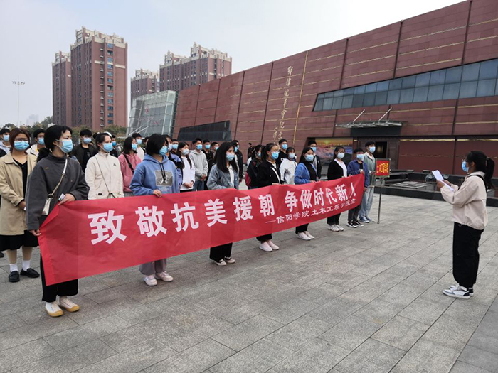 10月29日,土木工程学院在鄂豫皖革命纪念馆开展了主题团日活动。全院团员代表参加了本次活动。活动开始,由团总支书记吴琼茹引领团员们列队,齐唱国歌。团员代表任晶媛同学向全体人员作了题为“致敬抗美援朝,争做时代新人”的主题演讲。团员代表重温了入团誓词。随后,带领大家进入展馆参观学习,追忆革命英雄故事。