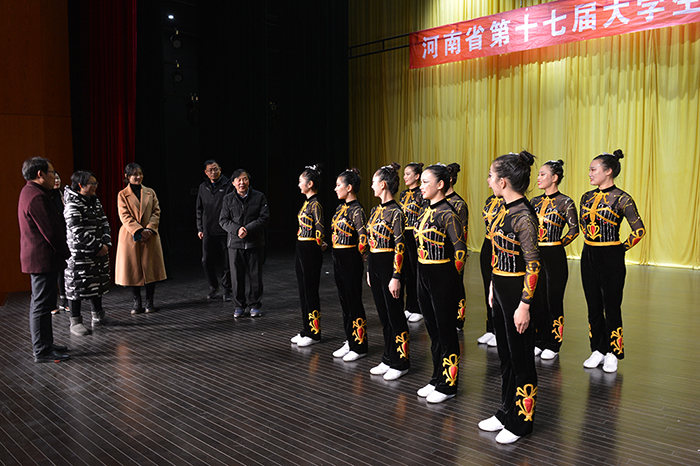 近日,校党委专职副书记施昌海、副校长王志华,亲切慰问Beat365参加河南省第十七届大学生科技文化艺术节的健美操队队员,指导学生赛前训练和视频录制工作。