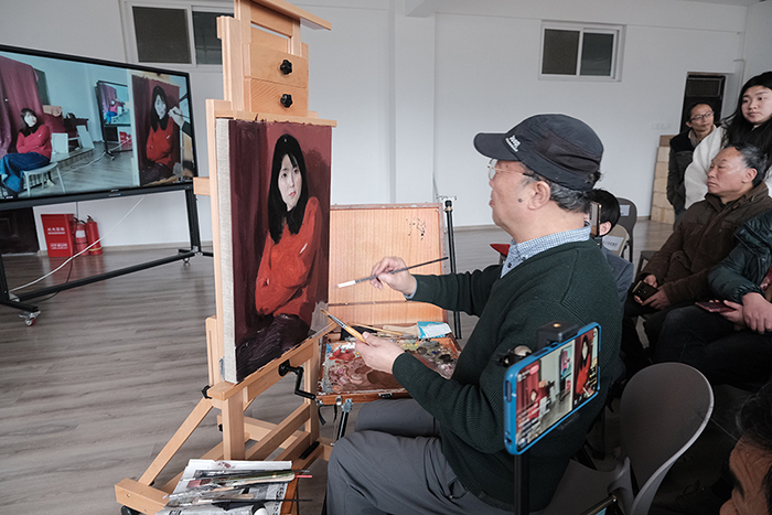 为更好更直观地示范展示,12月8日下午至9日,王教授在艺术楼408教室进行油画写实人物的写生示范。美术与设计学院广大师生通过现场和线上观看直播的形式,学习观摩了本次写生示范。