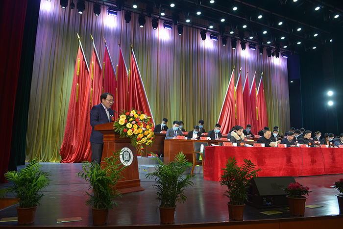 校团委书记郑山峰为大会致辞。第一届学生委员会执行主席杜萌蕾作了题为“聚力新阶段 奋斗新征程——团结带领全校同学为打赢打好迎评促建攻坚战贡献力量”的工作报告。