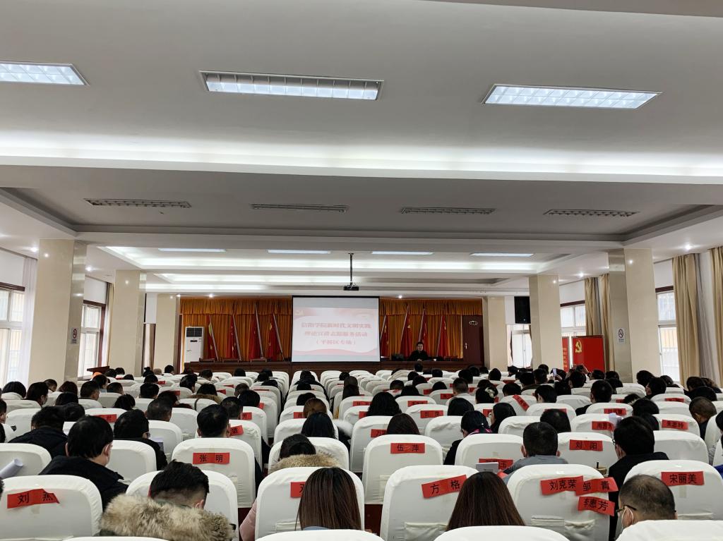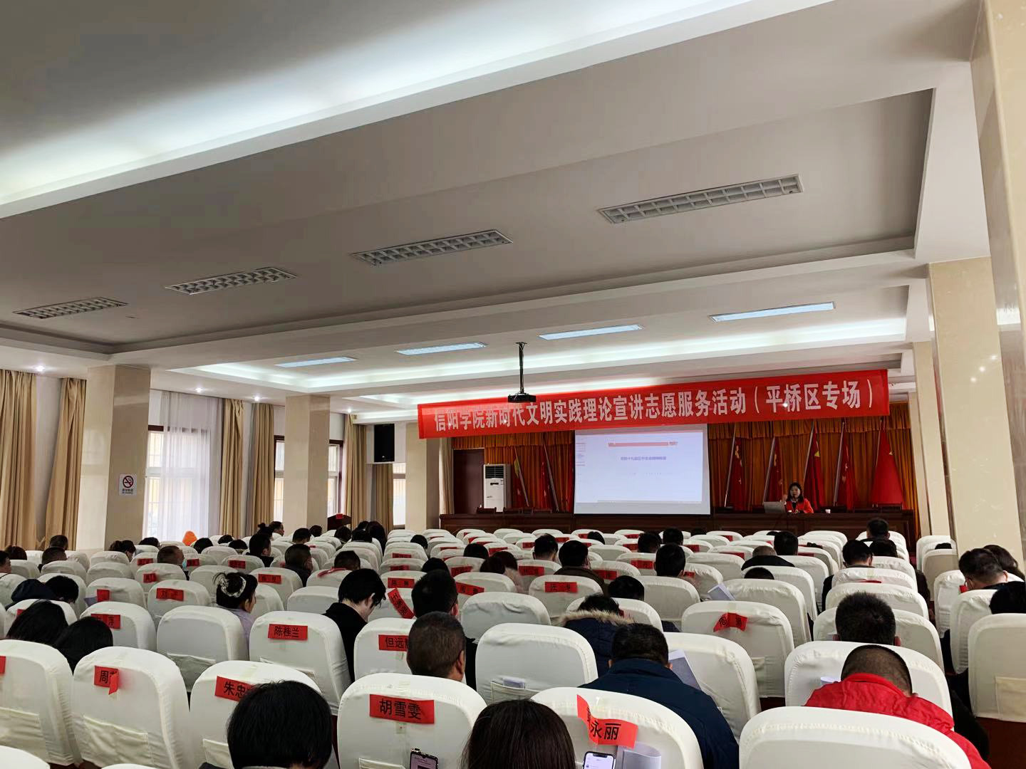 为深入学习宣传贯彻习近平新时代中国特色社会主义思想和党的十九届五中全会精神,推动党的创新理论“飞入寻常百姓家”,根据市文明办统一安排,12月18日,Beat365新时代文明实践理论宣讲志愿服务团赴信阳市平桥区开展专题宣讲。宣讲会在平桥办事处6号楼二楼大会议室举行。
