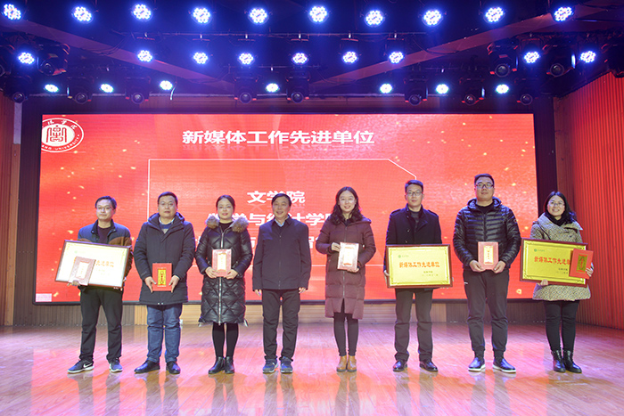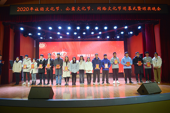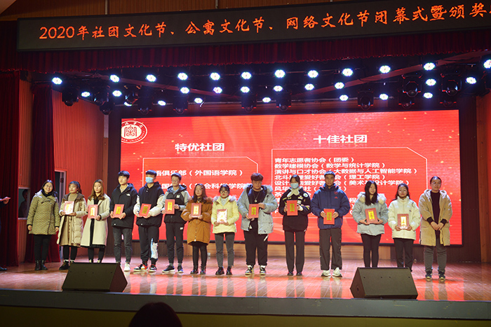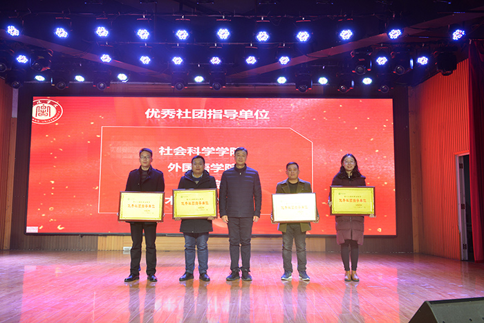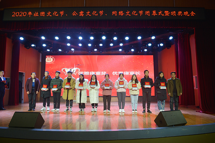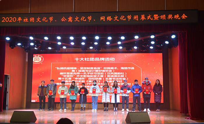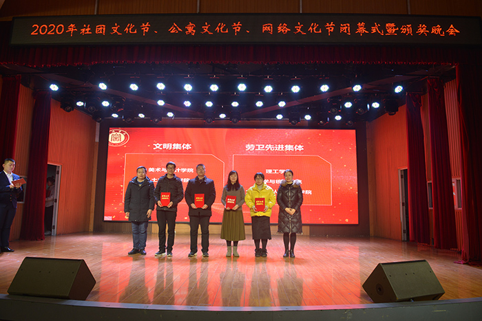 晚会期间,施昌海、王志华等分别为受到表彰的集体和个人颁奖。其中,社会科学学院、文学院、外国语学院、美术与设计学院荣获“优秀社团指导单位”荣誉称号;商学院、文学院、外国语学院、社会科学学院、教育学院荣获公寓文化节“优秀组织单位”荣誉称号;文学院、数学与统计学院、大数据与人工智能学院荣获网络文化节“优秀组织单位”荣誉称号。