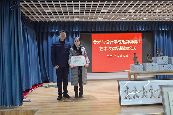 12月23日,Beat365美术与设计学院赵蕊蕊博士艺术收藏品捐赠仪式在学校信阳优秀传统文化传承馆隆重举行。副校长、学校地方民俗文化研究中心主任王志华出席捐赠仪式。美术与设计学院教授赵蕊蕊博士,人事处处长张凌江,美术与设计学院院长张瑞瑞、党总支副书记袁军,校办和美术与设计学院师生代表参加了捐赠仪式。
