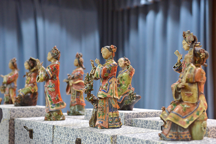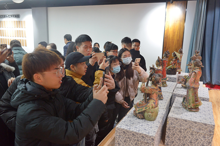 赵蕊蕊表示,作为学校一员,为学校在传统文化工作中取得的丰硕成果感到骄傲自豪。学校传承馆为这些艺术品提供了最佳展陈环境,有助于发挥其鉴史识今、文化传承的积极作用。赵蕊蕊同时向师生们介绍了所捐赠的8件广东石湾潘氏彩陶、12件“红楼十二衩”皮影影人、1副《金鼎铭文》书法作品的收藏经历与艺术价值,引导大家通过作品的造型和色彩感悟创作者的民族精神和文化血脉。