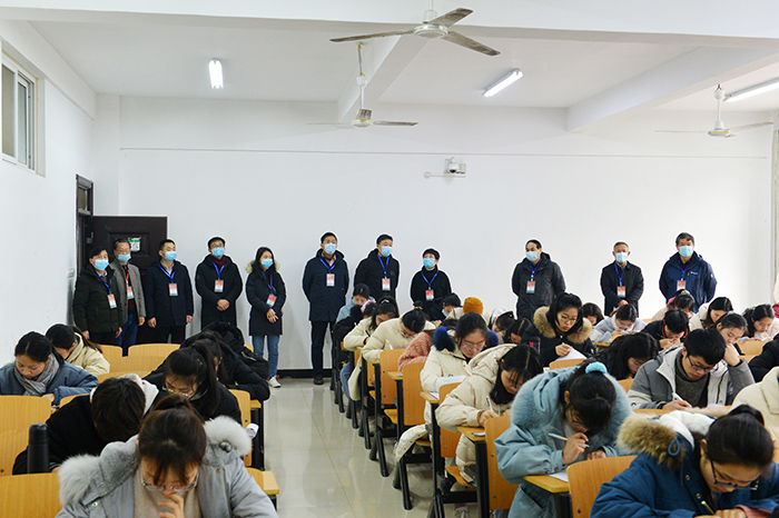 上午八时许,校领导首先在人文楼集中查看了文学院有关考场。随后,各位校领导分别在有关职能部门负责同志陪同下,深入所联系学院,与各学院院长、书记等一同巡视了相关考场,对考试组织、考场环境、考试秩序、监考教师履职情况进行了细致检查和询问。