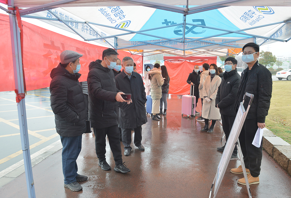 王志华、王强一行深入报到现场、校医院、智慧教室、教学实验室、图书馆、超市、快递点、学生公寓、学生餐厅、教材发放区、学校资产仓库等场所,实地查看,认真听取开学前相关工作准备情况,疫情防控落实情况,教学区、实验室等教学设施的运行与维护情况,以及后勤保卫保障工作。
