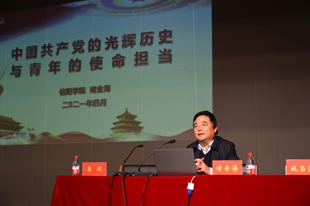 褚金海以《中国共产党的光辉历史与青年的使命担当》为主题,向全体学员作了首场专题辅导报告。他以中华民族光辉灿烂的古代文明导入,着重从近代中国的政治、经济与文化背景论述了中国共产党诞生的可能性;深刻阐述了中国共产党创建100年以来,在革命、建设和改革的伟大实践中,始终坚持以实现中华民族伟大复兴为己任,带领中国人民不懈奋斗,谱写中华民族从“站起来”到“富起来”再到“强起来”的壮丽史诗。
