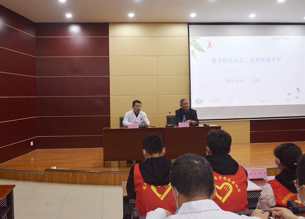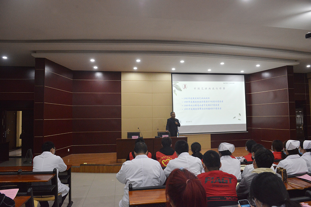 王强围绕艾滋病的定义、艾滋病的发病机制、艾滋病的流行现状、艾滋病的分期与主要临床表现、艾滋病的传播方式与艾滋病的预防等方面,进行了全面细致讲解。他指出,习近平总书记对艾滋病防治工作高度重视,深切关怀,作出重要指示,国家出台了“四免一关怀”政策。他表示,高校是艾滋病防控宣传的重要阵地,提高大学生预防艾滋病和承担社会责任的意识意义重大。希望学子们用实际行动积极参与防艾宣传,贡献自己的青春力量。