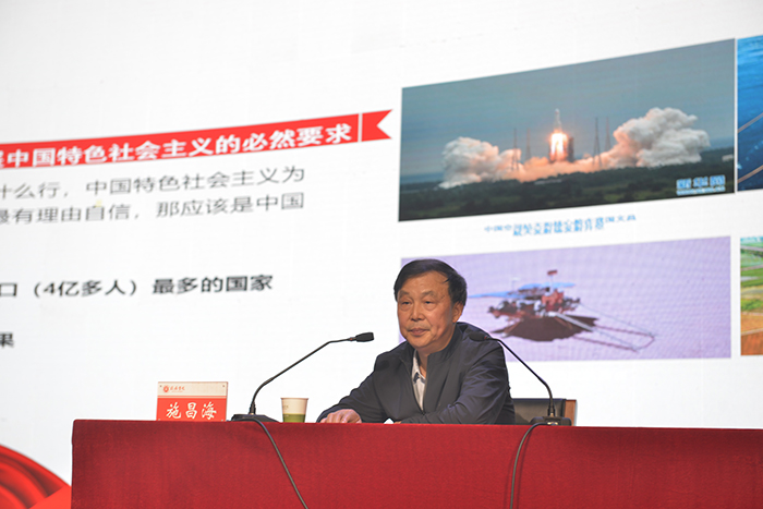 开班仪式结束后,施昌海以《深入学习党史 激发奋进力量》为题,从党史学习教育的重大意义、党史学习教育的重要内容和开展党史学习教育的基本要求等三个方面,通过大量重要文献和典型事例,做了一场生动的辅导报告。阐述了开展党史学习教育是牢记初心使命、推进中华民族伟大复兴历史伟业的必然要求,是坚定信仰信念、在新时代坚持和发展中国特色社会主义的必然要求,是推进党的自我革命、永葆党的生机活力的必然要求。