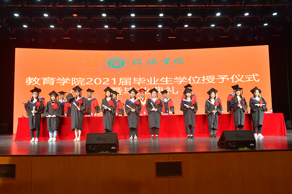 6月2日,教育学院2021届毕业生学位授予仪式暨毕业典礼在音乐厅举行,校长王北生出席。学院名誉院长希望毕业生学真知,要勇于探索,上下求索,学无止境;做真人,保持初心,牢记使命,积极展现当代青年的责任和担当;育真才,坚持教书育人,作有格局有情怀有学识的大先生。