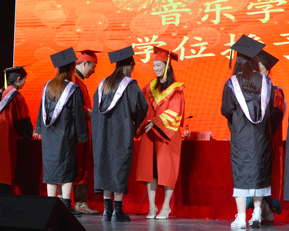 6月1日,音乐学院2021届本科生毕业典礼暨学位授予仪式在音乐厅举行,校长助理高雅出席并讲话。她希望毕业生坚定追逐梦想的决心,努力实现理想与抱负;坚守勤勉实干的恒心,踏实努力、知行合一;坚持忠于自我的真心,保持独立思考和不懈奋斗精神。
