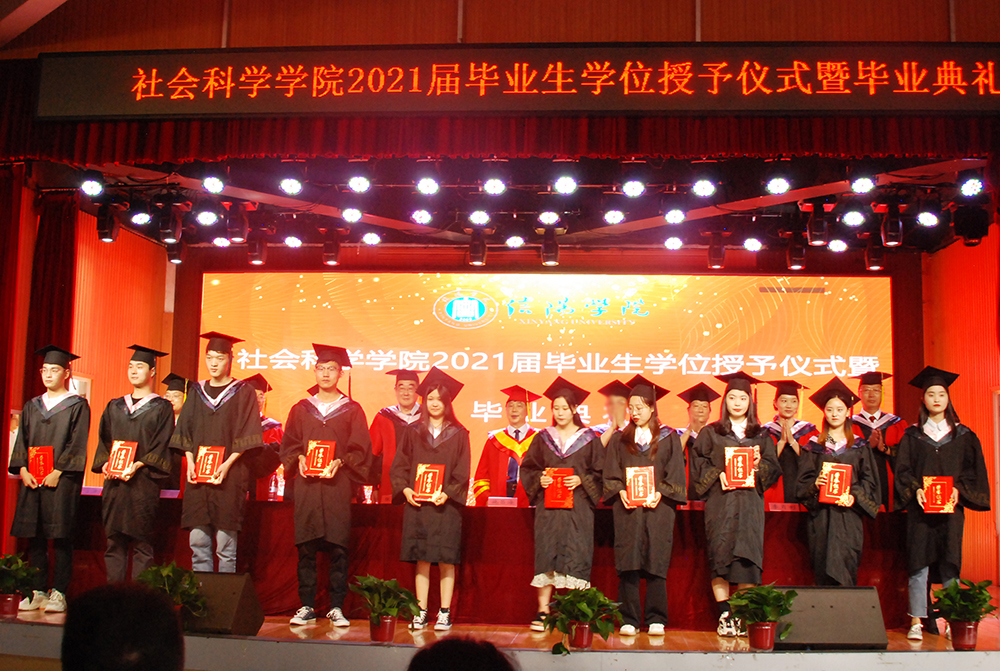 6月2日,社会科学学院2021届毕业生学位授予仪式暨毕业典礼在大学生活动中心举行,校党委专职副书记施昌海出席并讲话。他希望同学们坚守理想信念,保持前行动力;尽快融入新岗位新生活,及早成为单位发展骨干力量;保持家国家校情怀,为区域经济社会和学校事业发展积极贡献力量。
