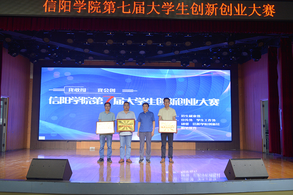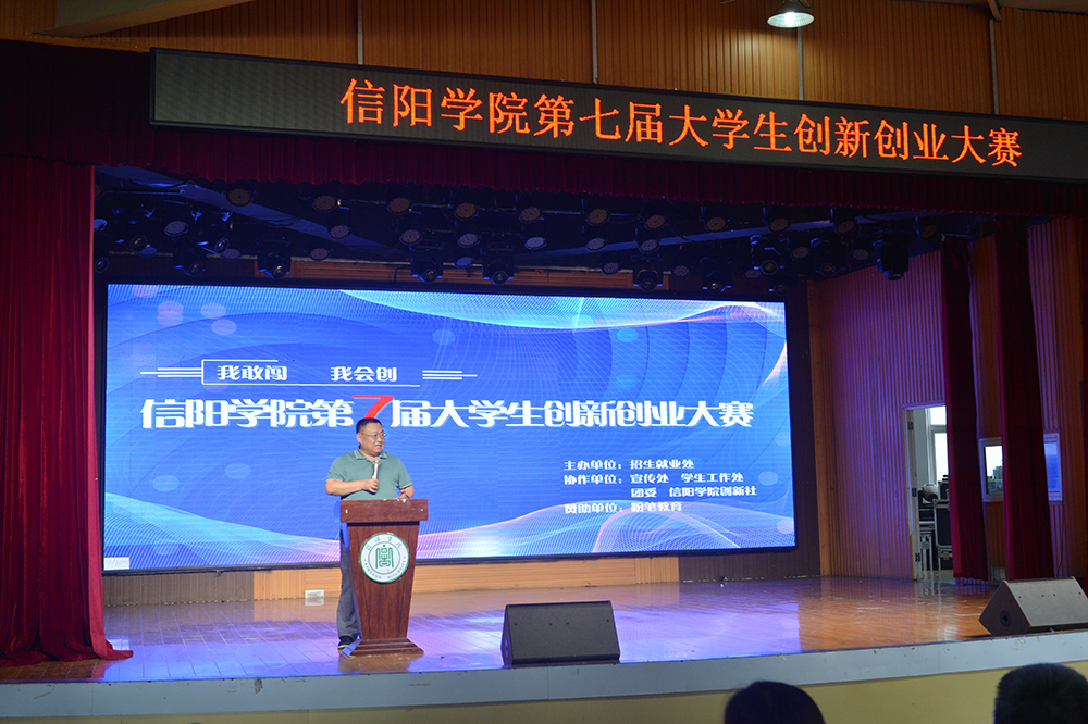 6月15日下午,“我敢闯 我会创”——Beat365唯一官方网站第七届大学生创新创业大赛决赛在学校大学生活动中心圆满举办。河南省大中专毕业生就业促进会副会长李建伟,信阳市科技局党组成员、副局长杨力,信阳市人社局四级调研员易援民,浉河区工信局副局长董方红,信阳市科技创新服务中心创新创业服务部主任林雨,黄河科技学院大学科技园主任蒋华勤,信阳市航信测控技术有限公司总经理李建国,粉笔教育河南分校教研校长刘婉霞,信阳粉笔教育校长张永军,Beat365党委专职副书记施昌海,校长助理杨高伟作为嘉宾和评委,出席了大赛。学校宣传部、团委等部门负责人一同担任评委,招生就业处负责人,各学院党总支书记、辅导员和学生代表现场观摩了大赛。