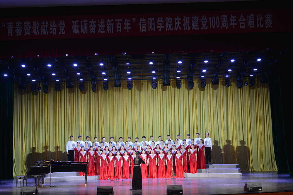 外国语学院合唱队表演的《唱支山歌给党听》拉开了比赛帷幕。比赛中,各学院合唱队统一着装、队形新颖、精神饱满、歌声嘹亮。《强军战歌》《保卫黄河》《团结就是力量》《一二三四》《光荣啊,中国共青团》气势磅礴、铿锵有力、催人奋进;《我的中国心》《我和我的祖国》《爱我中华》《国家》《没有共产党就没有新中国》《歌唱祖国》《灯火里的中国》,热情讴歌了党的丰功伟绩,唱响了青年学子对党、对祖国的深厚挚爱和无比自豪之情;《当那一天真的来临》《祖国不会忘记》抒发了所有为党和国家默默奉献人们的心声;《少年》《新征程》《走向复兴》《不忘初心》表达了青年学生对党和国家的美好祝福,坚定了青年学生坚定跟党走、奋进新时代的决心;音乐学院表演的合唱《龙的传人》和原创作品《社会主义真的好》热情赞美社会主义制度的优越性,引导学生坚定社会主义信念、为党的新百年目标而努力奋斗,将比赛推向高潮。