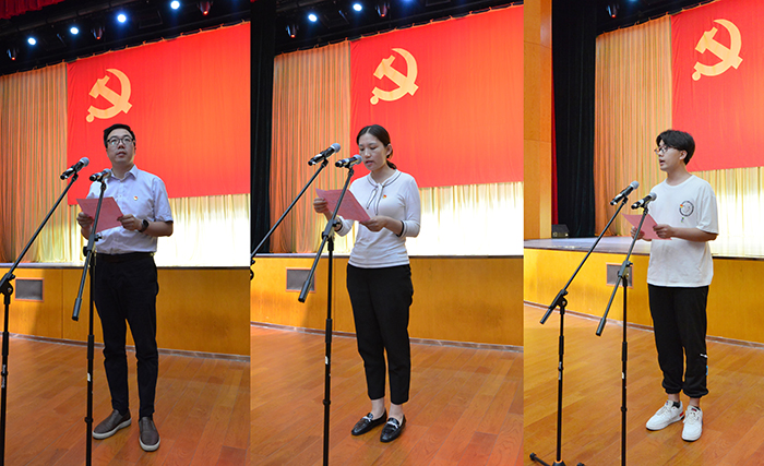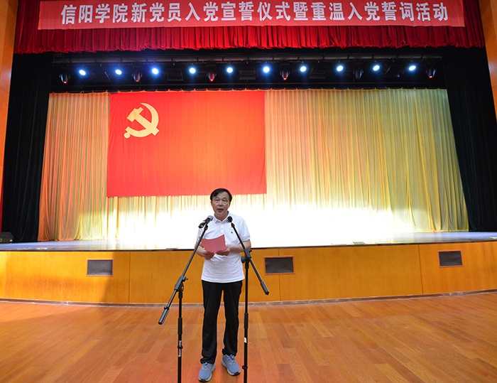 褚金海发表讲话。他对在中国共产党成立100周年之际光荣入党的新党员表示热烈祝贺,并简要地回顾了中国共产党从成立以来,带领全国人民实现从站起来、富起来到强起来波澜壮阔的光辉历史。向全体党员师生提出三点希望:一是要坚定理想信念,锤炼党性修养。要坚定理想信念,强化党员意识,既要在组织上入党,更要在思想上入党,始终保持在政治上清醒、立场上坚定、态度上鲜明,切实把共产党员的远大理想与实现党的现阶段奋斗目标结合起来,把个人的人生追求与民族的前途命运紧密联系起来。二是要勤学实干,发挥模范作用。要始终牢记作为一名共产党员的光荣使命,充分发挥党员先锋模范作用,思想上要与时俱进,工作上要率先垂范,生活上要严于律己,做勤奋学习、刻苦钻研和多干实事的表率,为广大师生做好榜样,传播正能量,引领新时代潮流。三是要牢记宗旨,永葆先进形象。要时刻牢记全心全意为人民服务的根本宗旨,始终保持共产党人的蓬勃朝气、昂然锐气和浩然正气,争做优秀共产党员,自觉肩负起为中国人民谋幸福、为中华民族谋复兴的初心和使命,做一名合格的、无愧于党员称号和入党誓词的真正共产党员。