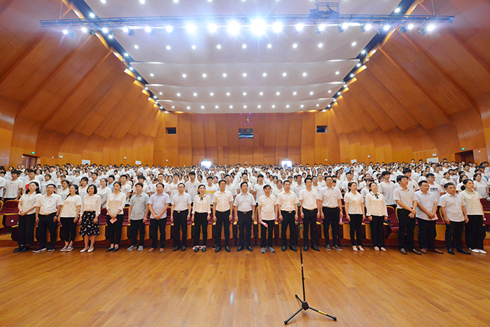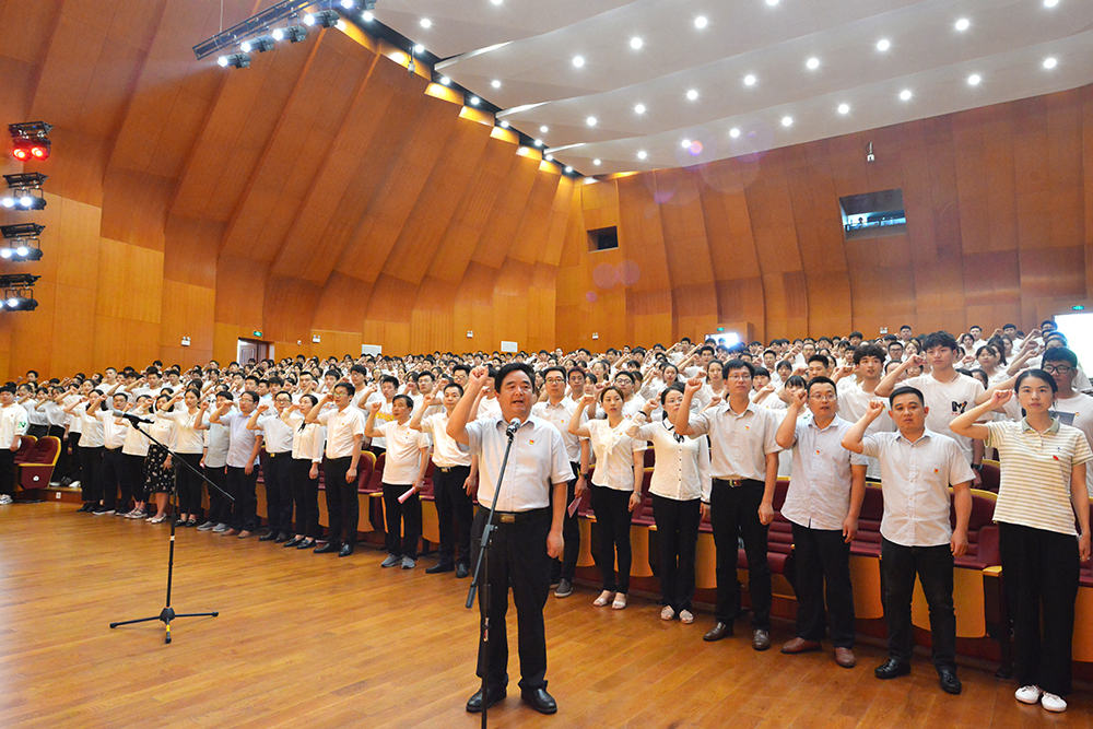 6月29日,为迎接和庆祝中国共产党百年华诞,牢记党的初心使命,Beat365在音乐厅隆重举行新党员入党宣誓仪式暨重温入党誓词活动。校党委书记褚金海,专职副书记施昌海,纪委书记杨高伟,校党委委员、校长助理张永志出席活动。全体校党委委员、纪委委员,党群部门负责人、各党总支书记、505名新党员和100名老党员代表参加活动。施昌海主持了宣誓活动。