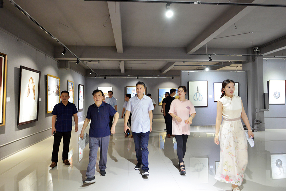 出征仪式结束后,施昌海、王志华等校领导参观指导庆祝建党百年书画、摄影、征文作品展,对参展作品给予肯定和赞赏,认为这些作品具有强烈的时代性、思想性和艺术性,充分展示了学校师生爱党爱国、朝气蓬勃的精神风貌和良好的专业素养。