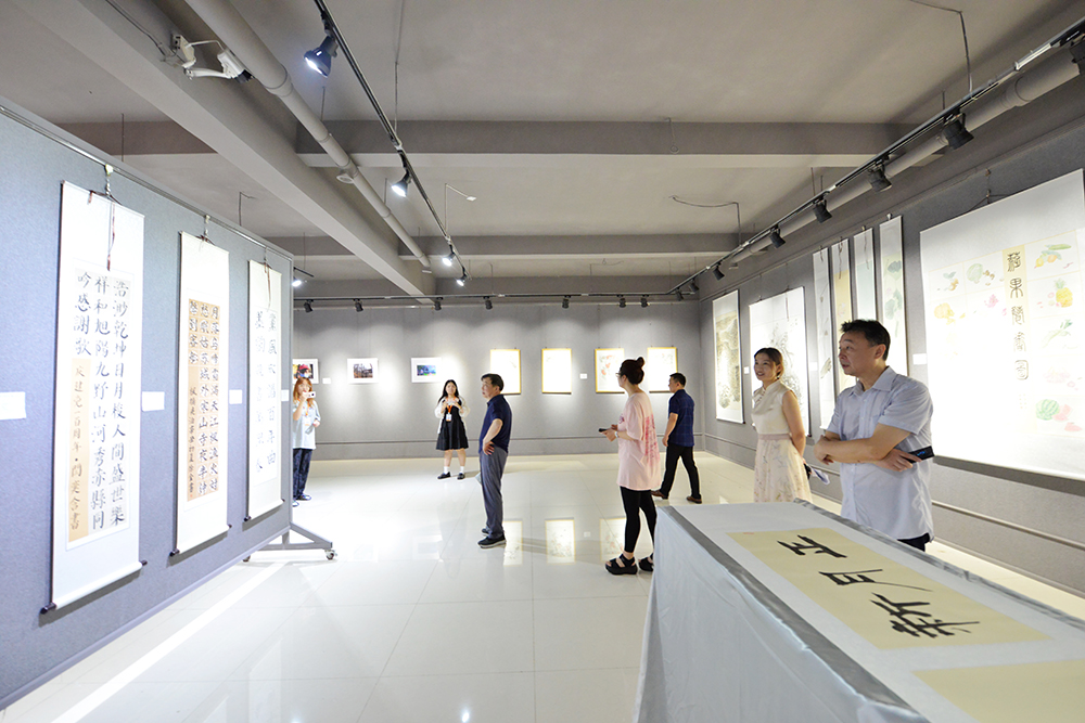 本次展览由宣传部主办,美术与设计学院、文学院承办,是建党百年系列庆祝活动之一,共展出主题鲜明、形式多样的书画、摄影作品近百件。师生们用饱含深情的笔墨描绘精彩的作品,以字抒意,以画寄情,以优秀的艺术作品赞颂党的光辉历程、讴歌祖国建设成就,抒发了“学党史、悟思想、办实事、开新局”的信心决心,向中国共产党百年华诞献礼,在全校营造了热烈庆祝中国共产党成立100周年的浓厚氛围。