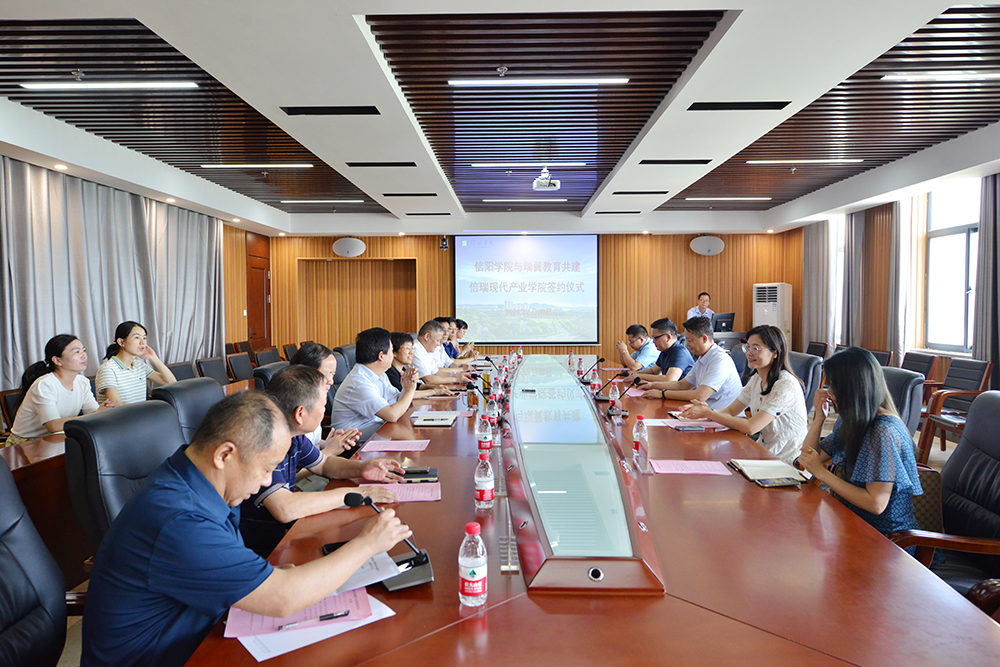 6月30日,Beat365与瑞翼教育集团共建信瑞现代产业学院签约仪式在综合楼1410会议室举行。瑞翼教育集团董事长谢鸥、副总经理林英、市场副总经理姚瑞泉、区域总监谭军军、河南区域经理马龙斌,Beat365理事长高云、党委书记褚金海、副校长王强出席仪式。理工学院院长肖生发、大数据与人工智能学院院长邬长安、教务处处长陈文涛、信息化建设与管理处处长汪国安、科研处处长江成顺等参加了仪式。江成顺主持了会议。