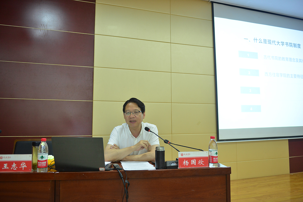 杨国欣教授长期从事课外育人工作研究,在这一领域富有建树。他从“什么是现代大学书院制度”“为什么要推进书院制改革”“我国内地高校推行书院制的情况、经验与问题”和“河南科技大学书院制改革的探索”等四个方面进行了深刻解读。他详细梳理了我国古代书院的教育理念及其特征、西方住宿书院的主要特征、现代大学书院制度的概念及主要特点。