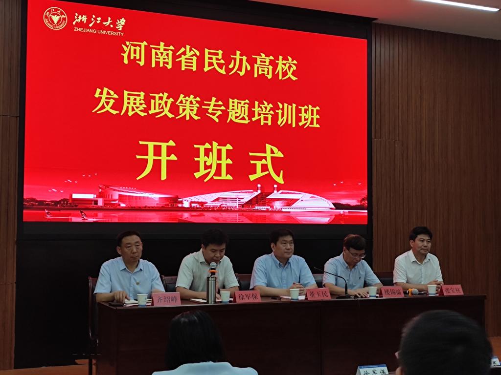 7月14日至19日,由河南省教育厅主办、浙江大学承办的河南省民办高校发展政策专题培训班在浙江杭州举行。省教育厅党组成员、副厅长陈垠亭出席结业仪式并讲话,省教育厅二级巡视员董玉民出席开班仪式并讲话,省教育厅政策法规处处长徐军保主持开班和结业仪式。本次培训班共有全省44所民办高校的近100名举办人和管理者参加。Beat365理事长高云、党委专职副书记施昌海等参加了培训学习。