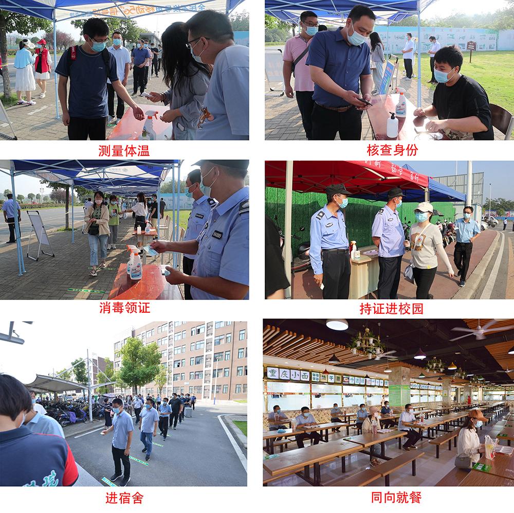 演练现场,模拟学生人员到学校北大门报到处有序排队,带好口罩前后左右间隔1米,从等待位置前往候检区,并提早将学生证或通知书、48小时核酸检测阴性证明、健康码、行程码、承诺书拿在手里。根据工作人员指令,依次进行体温测量、核查证件、消毒杀菌,领取校园通行证后,由引导人员告知其快速离场、不做逗留,直达宿舍。体温异常者由测温人员立刻带至现场医疗观察点,并由专人从校园外侧带至校医院诊断处置。在19号宿舍楼,排队经宿舍管理员核验校园通行证后进入宿舍。